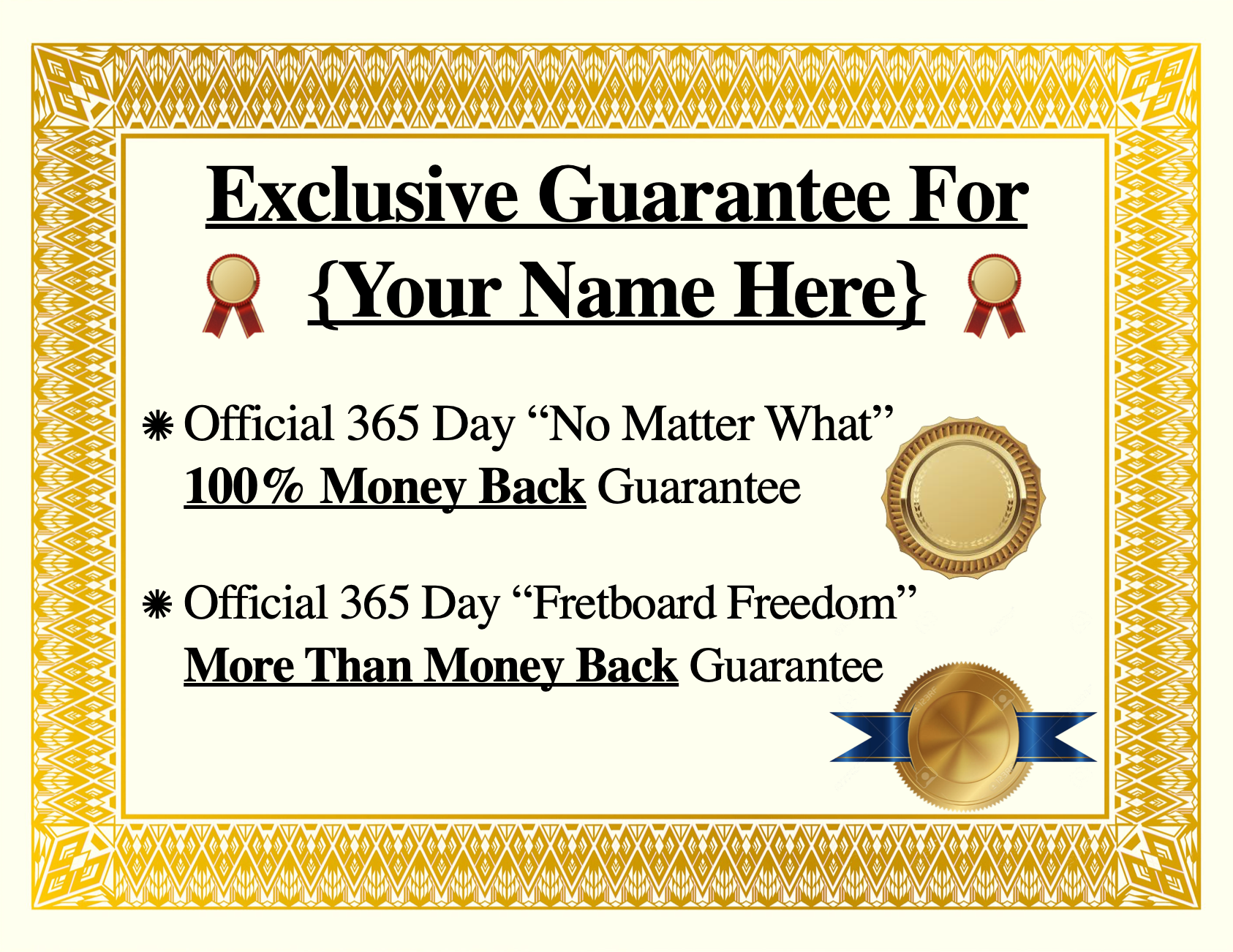 To be clear, this course is not intended for brand new beginners who have never played before. However, if you’re ambitious and serious about guitar, and you know you will still want to improve your playing a year from now, then you can go ahead and lock in your discount today. And our rockstar support team, along with the Breakthrough Guitar Supergroup will help you get up to speed as quickly as possible, so you can start enjoying the training. After all, you do have a full 365 days to try the program, so there is far more than plenty of time to get started.