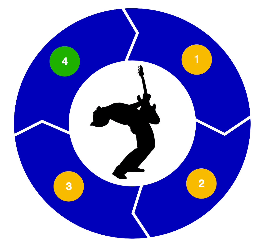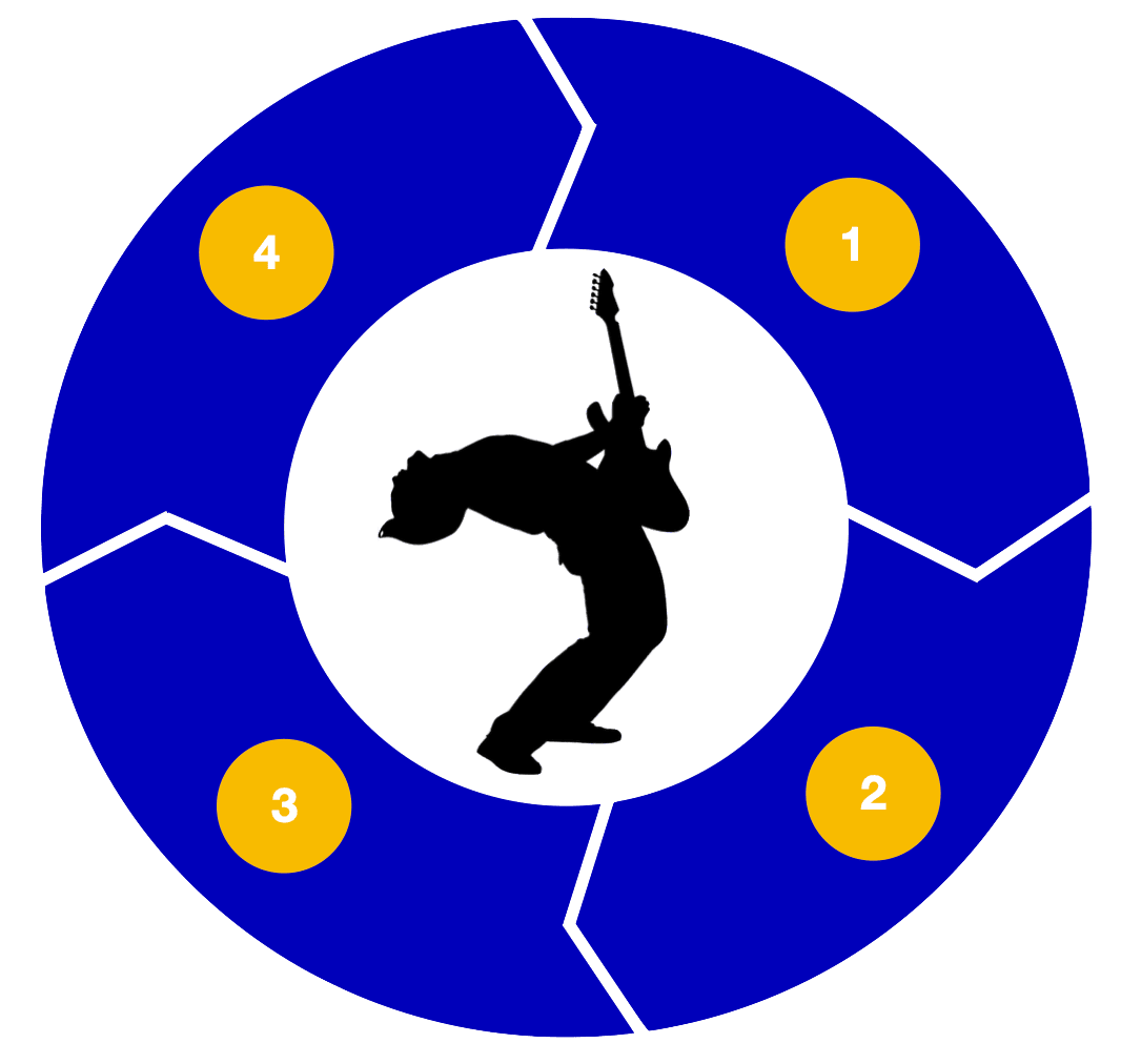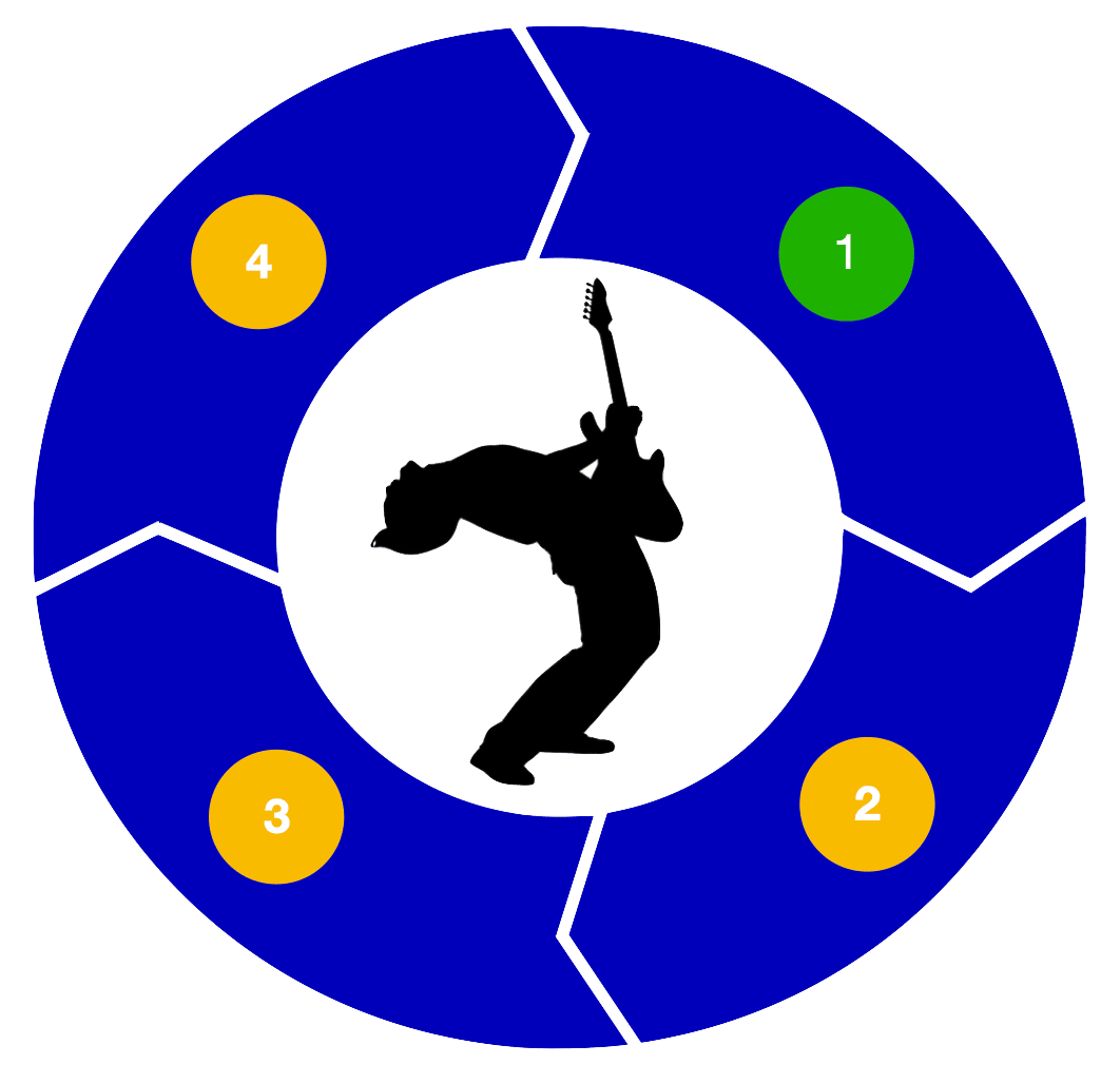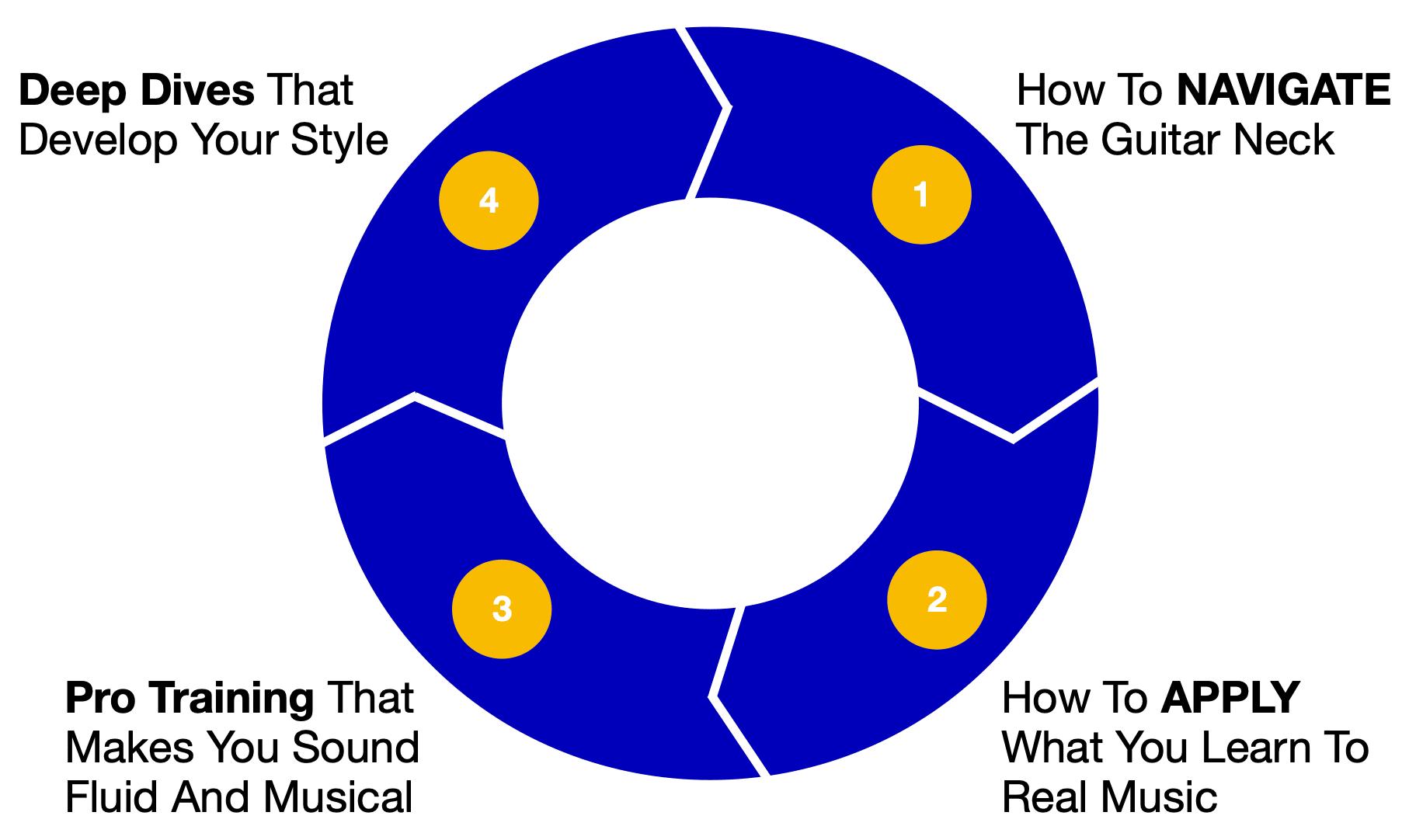 Why is this different from anything else out there? - The Accomplished Program is the only guitar training platform in the world specifically designed from the ground up with the "Navigation and Application" components in mind, so you make faster progress than you may have ever thought possible. The reason it works is because not only does it give you the big picture and the "why" behind everything you do, it constantly gives you many different inputs of guidance, modeling, future impressions, and feedback, while also giving you a clear “Track" to follow at every point in time, so you always know exactly what to do and how to do it.