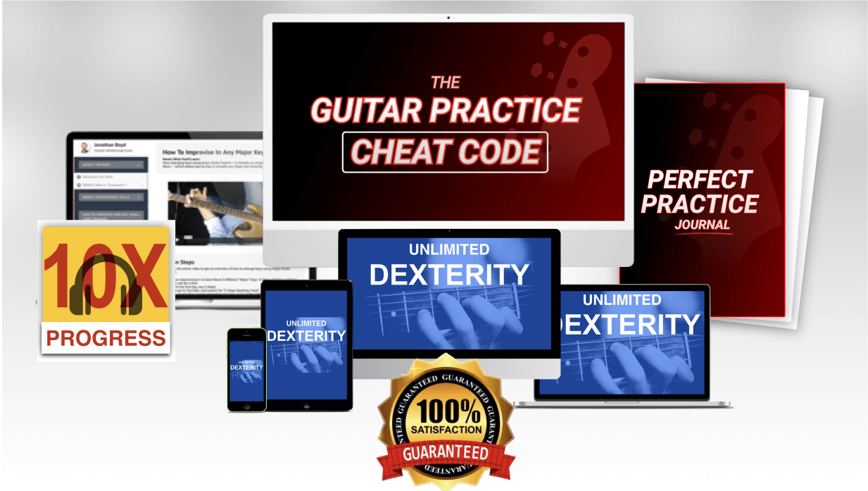 You get Lifetime Access to The Guitar Practice Cheat Code so you progress faster and have more fun than you ever thought possible… ($99 value)