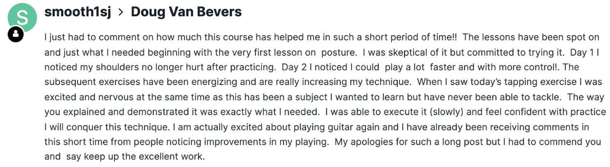 And we know how to guide you past those roadblocks (as well as avoid the traps most players get stuck in) to accelerate your journey where you’re totally happy with your guitar playing.